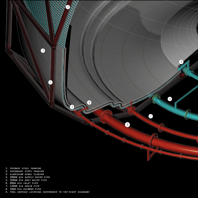 The project is also including the rebuilt public space. From the site context, the aim of the project is to provide forest-like relaxing public space but not distract surrounding. The organic wrapping structure is logically designed to function as the roof shading, facade and holding structure which connecting fluidly.