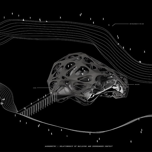 Thermelaphy is a public bath house setting at Lumpini park, large green space in between the rapidly expanding growth of the cities. Each space has been built up from different selected architecture element eg; skin material, light condition, acoustic and form to serve the notion of different space will have the different function of healing but all to perform both physical and mental happiness.